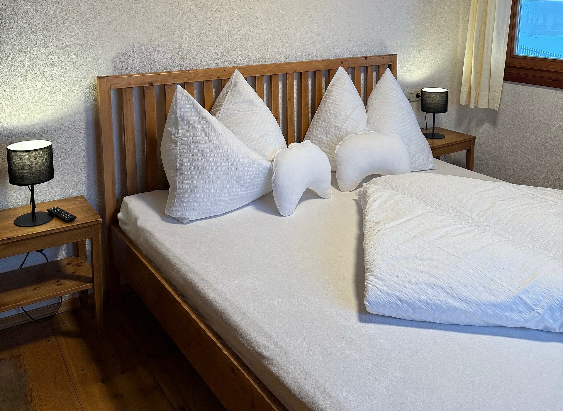 Die Benützung von Sauna und Schwimmbad im ca. 100 Meter entfernten Haupthaus, welches durch den Gastgarten erreichbar ist, ist im Preis inkludiert. Bademäntel und Handtücher liegen in den Wohnungen für Sie bereit.